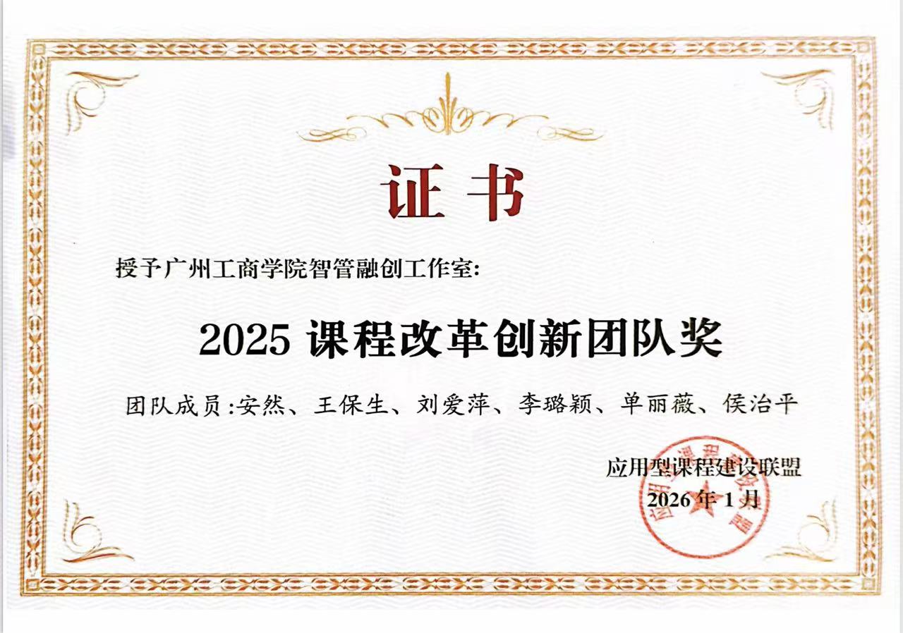 【本网讯】1月17日,应用型课程建设联盟2025年会论坛在珠海举行,来自各联盟学校代表近150人参加会议。我校大健康与管理学院工商管理专业教研室教师安然及团队成员王保生、刘爱萍、李璐颖、单丽薇、侯治平应邀参会,并凭借出色的课程改革实践荣获“2025课程改革创新团队奖”,充分展现了我校在应用型课程建设领域的创新实力与育人成果。