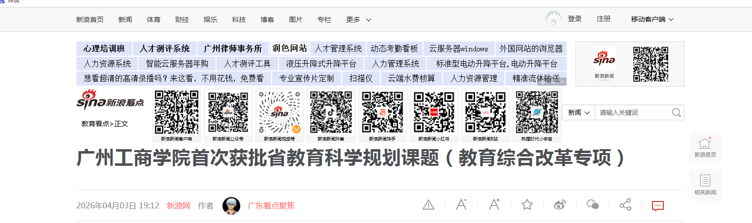 【新浪网】喜讯:广州工商学院首次获批省教育科学规划课题(教育综合改革专项)