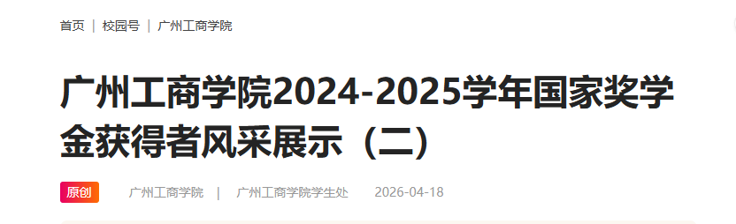 【中国大学生在线】广州工商学院2024-2025学年国家奖学金获得者风采展示(二)https://xyh.univs.cn/a/xyh_xyh_gzgsxy/260418/2038735.shtml