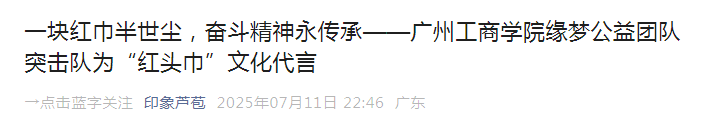 2025年7月4日-7月18日,广州工商学院缘梦公益团队突击队师生10人以“红头巾”文化为调研主题,来到三水开展实地调研。第一站,突击队来到了芦苞胥江祖庙,寻访由当地退休阿姨群体组成的艳阳红太极队,这支以女性为主的队伍,褪去职场忙碌,以太极为载体重燃生活热情。在2025年6月三水区老年人集体舞大赛中,凭借融合“红头巾”坚韧精神的作品《红头巾》获奖。
