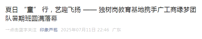近日,独树岗教育基地热闹非凡,由其联合广州工商学院会计学院缘梦团队共同开展的为期五天的暑期班圆满落幕。此次三下乡活动吸引了40多名学生踊跃参与,丰富多彩的课程让孩子们在夏日里收获了知识与快乐。