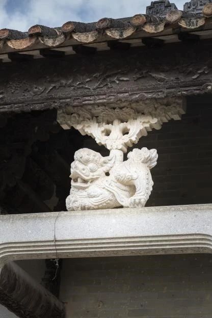 西洋拱窗与中式飞檐交融,砖雕祥瑞与蹲状石狮相映成趣,队员们仰首细观纹饰,俯身记录细节,在讲解员的娓娓道来中触摸历史脉搏。“这些建筑不仅是砖瓦的堆砌,更是先人智慧的凝固。”队员李安琪同学的感悟,道出了绿堂私塾作为芦苞当地文化瑰宝的价值所在。