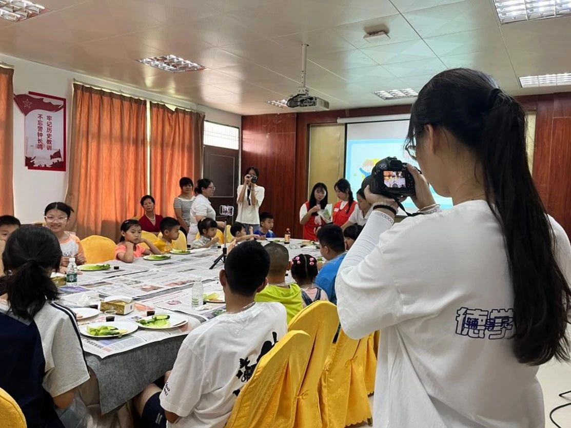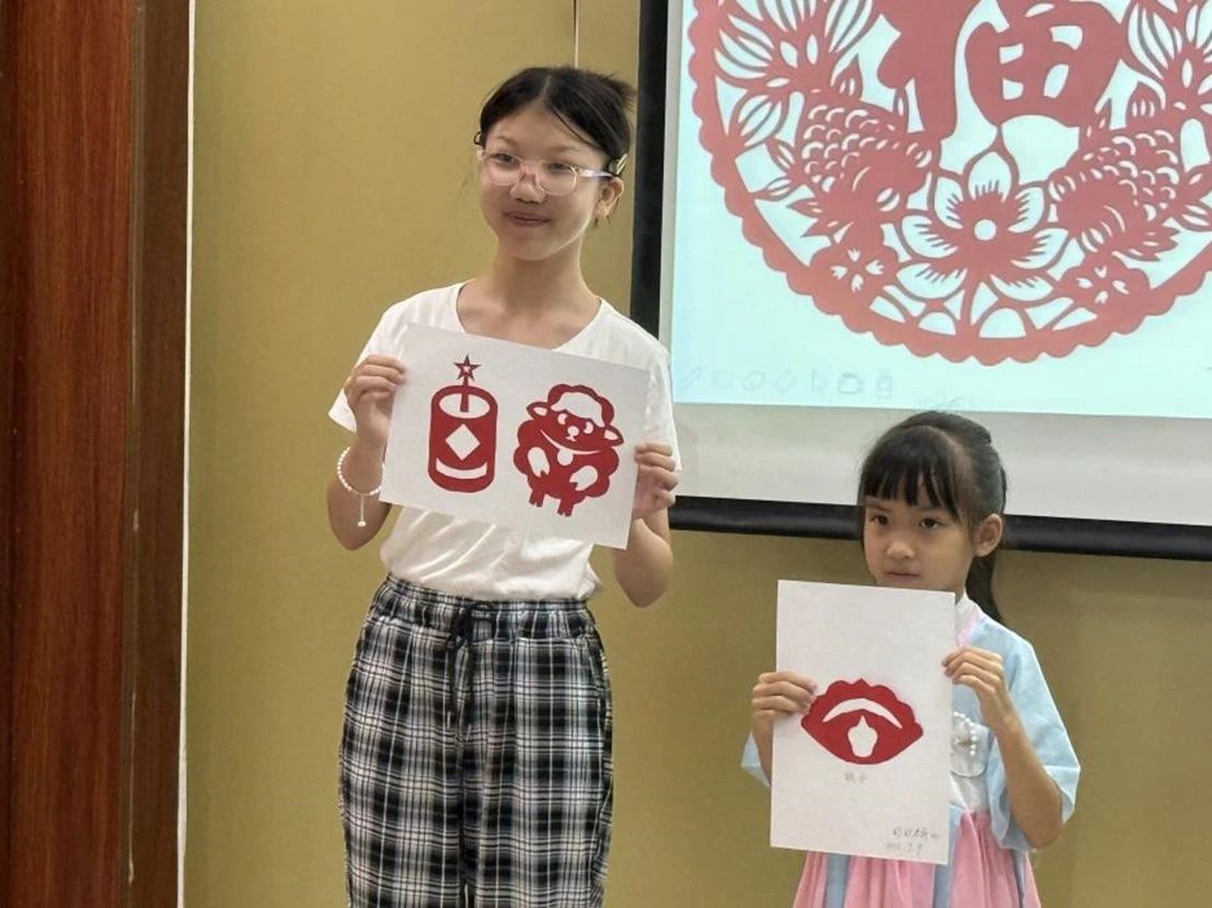 在四合村党群服务中心,一场别开生面的非遗剪纸课正在进行。广东省外语艺术职业学院益乡筑梦实践队以“德”为引,将剪纸技艺与德育深度融合,为乡村儿童打造沉浸式文化体验课堂。课堂上,小朋友们用稚嫩的手指翻动红纸,剪出“春”、灯笼等作品,队员们耐心指导,提醒安全细节。青穗梦之队全程记录,用镜头捕捉非遗技艺的“活态”传承画面,文化自信在青少年心中悄然生根。