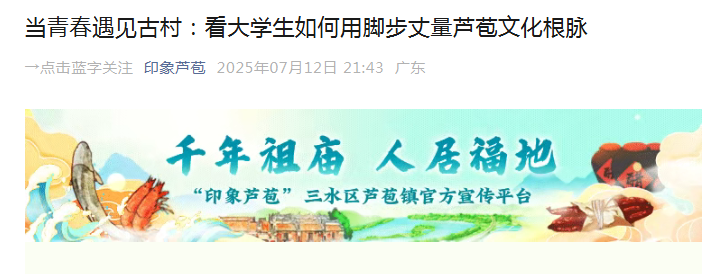 2025年7月9日,芦苞镇迎来了一群特殊的访客——广州工商学院青穗梦之队突击队,他们用独特的视角带我们走进“百千万工程”典型村——芦苞镇四合村,感悟芦苞镇乡村振兴中的文化魅力。