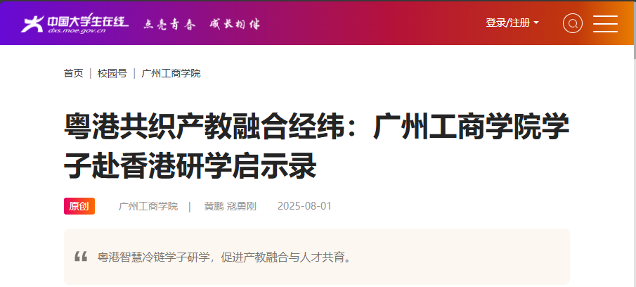 维多利亚港的晨雾尚未散尽,从广州和深圳分乘同次高铁的一群身着蓝白色研学服的青年已便捷抵达香港西九龙。他们来自广州工商学院粤港澳大湾区智慧冷链产业学院,近日,跨越广深港核心城市的“黄金走廊”,怀揣着对产业的追问与对未来的期许,在院校导师和产业导师的带领下开启了一场为期四天跨越学科和地域的教育实践。