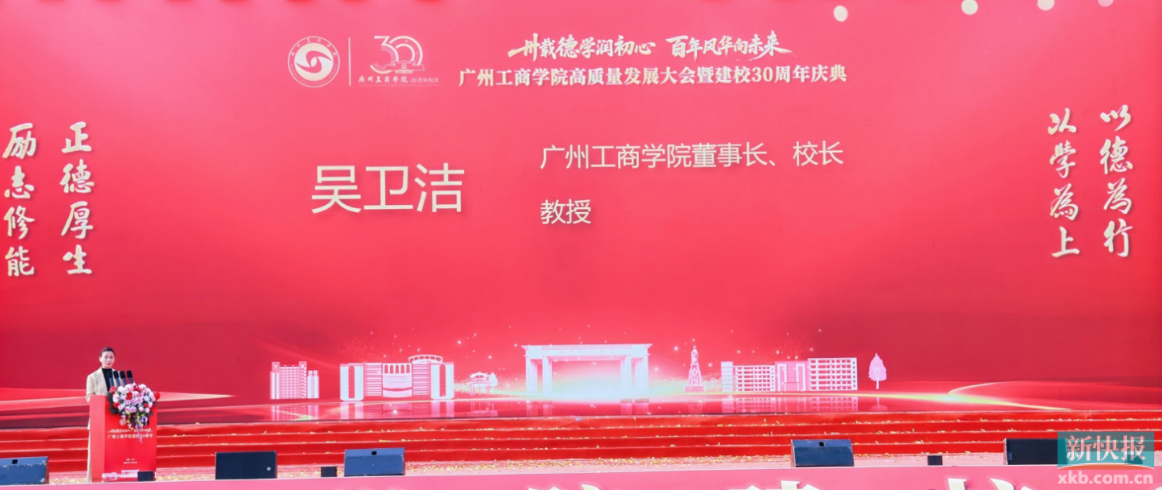 新快报讯 狮岭山麓欢歌起,思源湖畔气象新。12月6日下午,广州工商学院高质量发展大会暨建校30周年庆典在花都校区举行。各级领导、兄弟院校代表、海外合作高校嘉宾、社会各界朋友与学校师生校友欢聚一堂,共同回顾学校三十载砥砺奋进的办学历程,擘画高质量发展的崭新蓝图