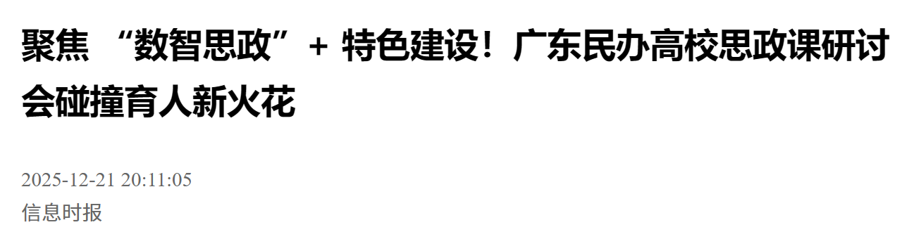 【信息时报】聚焦 “数智思政”+ 特色建设!广东民办高校思政课研讨会碰撞育人新火花https://xxsb.gz-cmc.com/pages/2025/12/21/9f64b060d6d341a09fb9682e758f0cbf.html