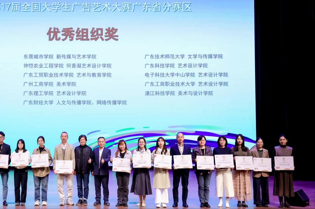 【本网讯】全国大学生广告艺术大赛是教育部高等教育司指导的国家级权威赛事,被直接纳入高校学科竞赛排行榜,含金量极高。在全国大学生广告艺术大赛广东省分赛上,我校美术学院表现突出,成绩斐然,共荣获省级奖项46项,其中包括学生等级奖共42项(一等奖5项、二等奖16项、三等奖21项),优秀教师奖2项,优秀组织奖1项,优秀组织工作者1项。