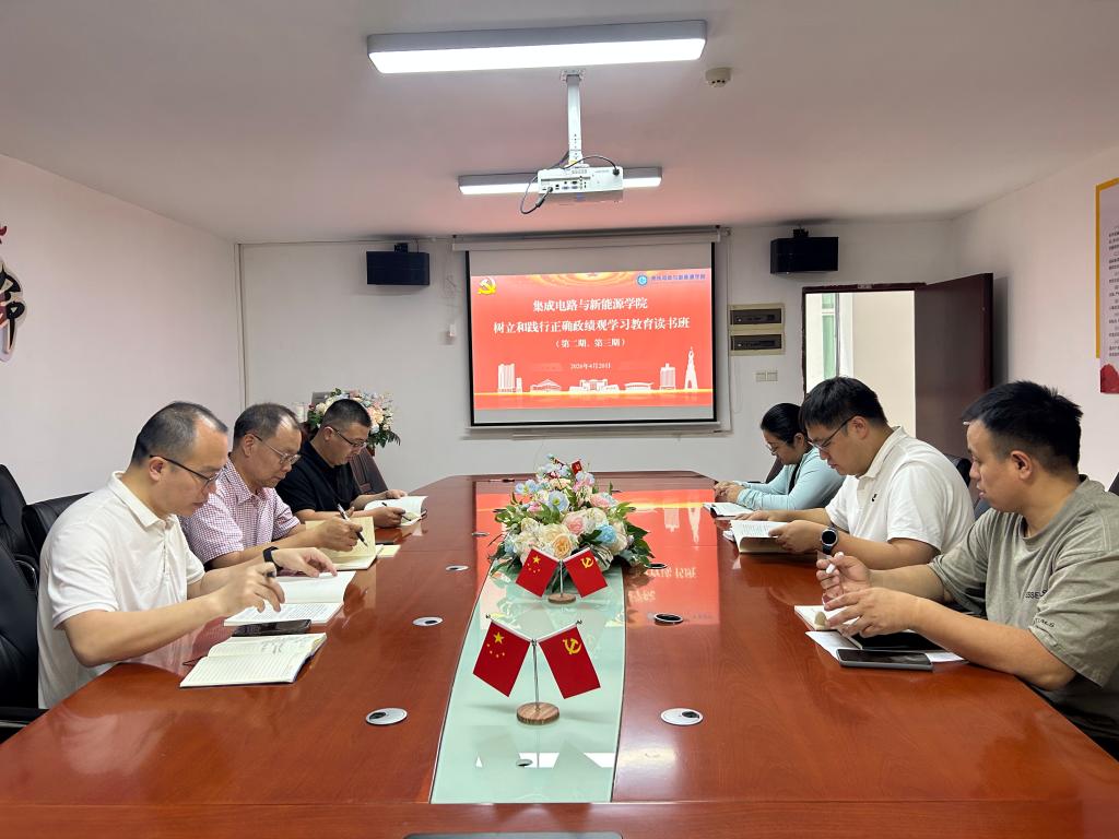 【本网讯】4月20日,集能学院党总支举办树立和践行正确政绩观学习教育读书班,通过集中学习、交流研讨和个人自学等方式,深入学习贯彻习近平总书记关于树立和践行正确政绩观的重要论述,紧扣“政绩为谁而树、树什么样的政绩、靠什么树政绩”根本命题开展专题研讨。学院党总支书记、院长宋锋华主持会议。