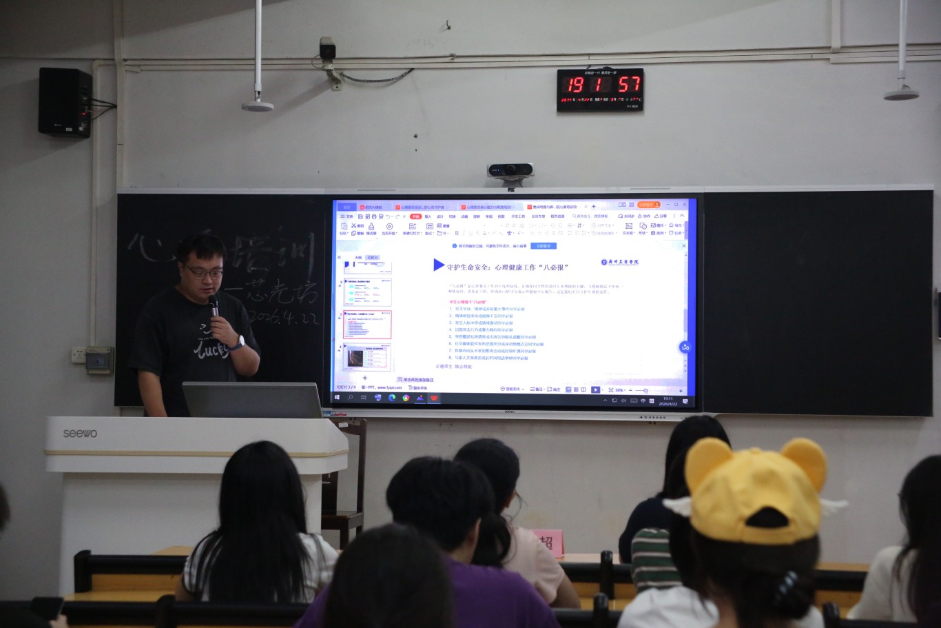 培训围绕心理委员角色定位、工作职责、常见心理问题识别、危机干预流程、朋辈沟通技巧等核心内容展开系统讲授。主讲人二级心理辅导站学生干事李钿钿明确指出,心理委员不是专业心理咨询师,而是集宣传员、信息员、联络员、示范员于一体的班级心灵守护者,需在日常学习生活中细致观察、主动沟通、及时反馈,当好同学身边的“暖心人”与“预警员”。培训聚焦大学生高频心理困扰,详细讲解学业压力、人际关系矛盾、情绪调节障碍、过度网络使用等问题的典型表现与观察要点,结合真实场景开展互动讨论,引导心理委员掌握科学识别方法与应急处置思路。