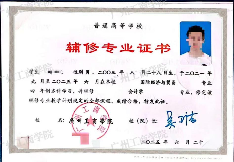 1.辅修专业。对辅修的专业有一定了解,并具备相应的学科基础,能够合理安排时间和精力进行辅修学习的具有广州工商学院正式学籍的四年制本科大一学生,或已完成第一学年的主修专业学习,且主修专业成绩优良的四年制本科大二学生,可报名修读与其本人主修专业不一致的辅修专业,修读学分至少为30个学分。在主修专业正常毕业(指无留级、延迟毕业或结业证换发毕业证)的情况下,如已获得辅修专业规定的学分,可另外颁发辅修专业证书。辅修专业证书的编号与主修专业的毕业证编号一致,学信网可查。