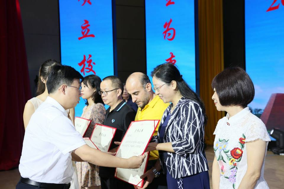 7月6日上午,学校在三水校区院部楼四楼影视厅隆重召开2021—2022学年党建教学科研表彰大会,总结了2021—2022学年的教学科研工作,表彰了党建工作奖、科研先进个人、科研先进集体、省一流课程、省一流专业和省级教学成果奖、国一流专业六批奖项。学校领导、全体中层干部、专业负责人、教研室主任、国际教育学院等相关人员参加会议。会议由张辉副校长主持。