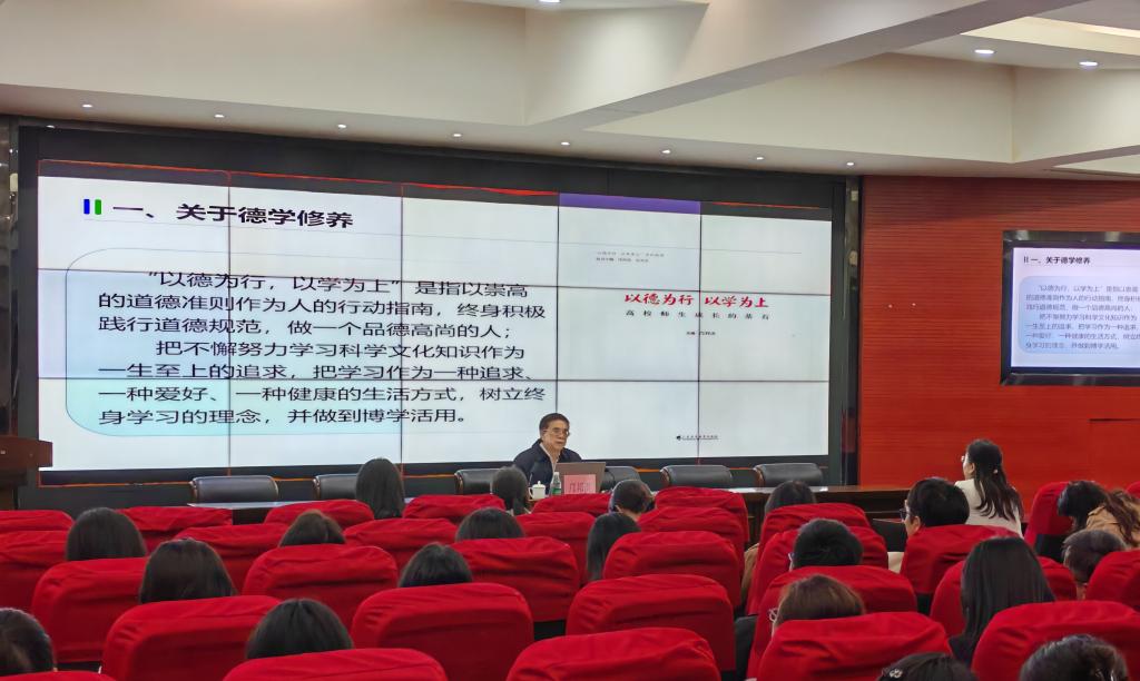 邝校长指出,“德学”修养理念的提出具有深刻的时代背景。面对社会多元思潮的冲击,当前高校部分师生存在忽视道德修养、缺乏实践锻炼的倾向,必须重塑“德学”并举的价值坐标,他强调,“德学”不仅是知识的积累,更是道德修养的体现,高校教师应以“以德为行、以学为上”教育理念,引导学生树立正确世界观、人生观、价值观,培养“有理想、有道德、有文化、有纪律”的新时代建设者和接班人。