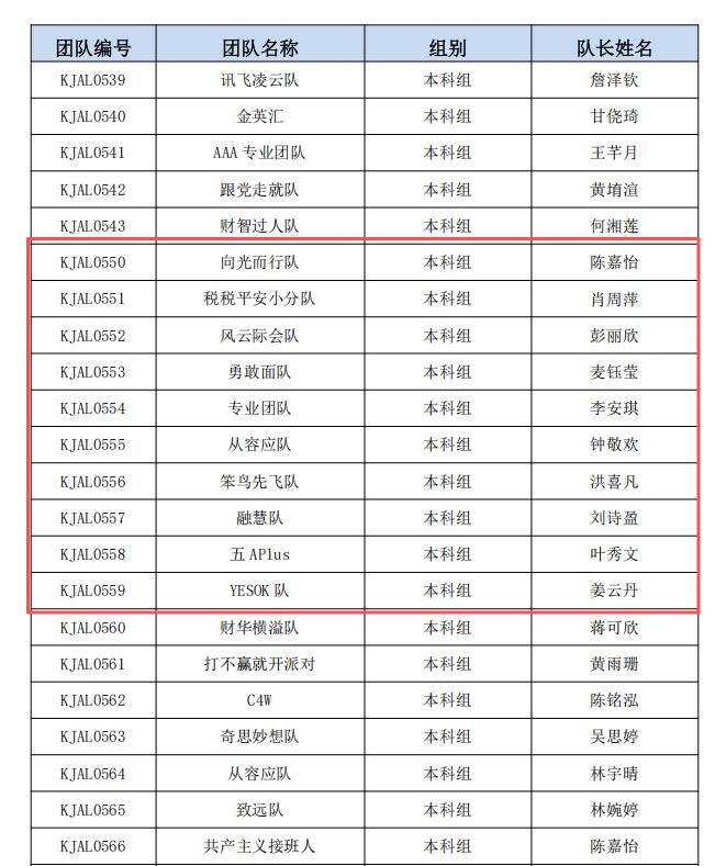 4月20日官方赛事通知:全国总决赛将于2026年6月6日至7日如期举行,参赛团队需提前完成抽签分组、商业计划书及展示视频提交等准备工作。期待我校晋级队伍在决赛中再接再厉、精益求精,持续展现会计学子的专业风采与决策智慧,再创佳绩。现将2026年全国高校商业精英挑战赛会计与商业管理案例竞赛全国总决赛入围名单公布如下: