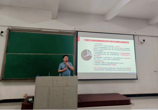 培训会中,黄涛老师通过专业的讲解与具有个性的演讲,围绕商标的作用、要素和种类等12点展开论述。通过提问的方式,巩固同学们对知识产权的理解。运用生活中的真实案例,给同学们形象的解释如何判断近似商标等等,使同学们更深刻地了解到生活的实例