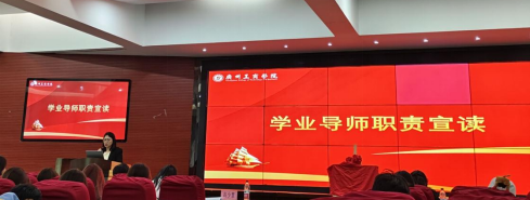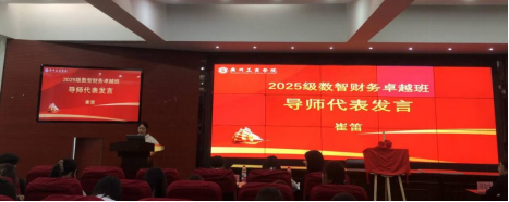 在仪式环节,主持人宣布了数智财务卓越班的校内外导师及辅导员名单,并详细宣读了学业导师职责,明确了导师在学生专业学习、科研竞赛、思想生活等方面的全方位指导责任,体现了学院对卓越班学生培养的高度重视与精细化管理。