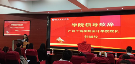 会计学院院长任道纹教授首先致辞,她对各位企业嘉宾的到来表示热烈欢迎,并衷心感谢金蝶长期以来对学院发展的大力支持。任院长指出,设立数智财务卓越班是学院应对数字时代变革、创新人才培养模式的关键举措,她勉励同学们珍惜这份荣誉与机遇,不仅要夯实专业基础,更要勇于实践创新,努力成长为兼具数字化能力、国际视野与社会责任感的新时代财会人才,并预祝本届校企联培班取得圆满成功。