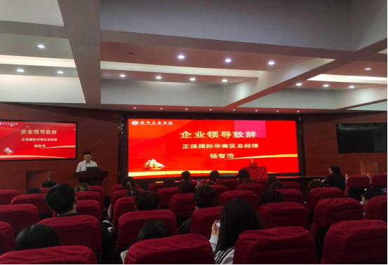 正保国际华南区总经理杨智浩先生代表合作企业致辞。他简要分析了当前财经领域数字化转型的趋势以及对大数据审计人才的迫切需求,表达了正保网中网对校企合作共同培养人才的高度重视。他表示,公司将积极整合资源,为实验班提供优质的实践平台、课程资源和师资支持,助力同学们提升实战能力,实现学业与职业的顺畅衔接。