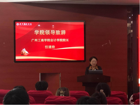 在随后的致辞环节中,会计学院院长任道纹教授发表了热情洋溢的讲话。她首先对正保网中网公司的大力支持表示感谢,并指出,在大数据、人工智能等新技术深刻改变审计行业的背景下,成立大数据审计实验班是学院主动适应行业发展、深化产教融合、创新人才培养模式的重要举措。她希望同学们能珍惜宝贵的学习机会,夯实专业基础,掌握前沿技术,努力成长为符合时代要求的高素质复合型审计人才。