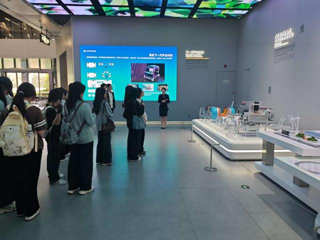 跟随讲解员的步伐,同学们开启了探索广汽奥秘的旅程。面对展台上陈列的各项尖端科技成果,大家认真听讲,在讲解员深入浅出的解说中,了解到了广汽最新的研发成果,在专注的聆听与积极的互动中,不仅汲取了前沿的行业知识,更在心中种下了创新与实干的种子。