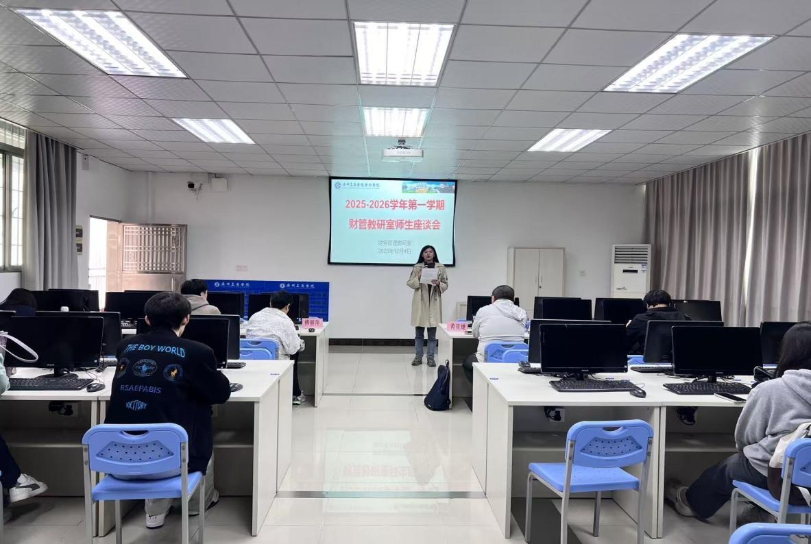为搭建师生沟通桥梁,精准对接学生学习需求,优化教学模式与育人成效,2025年12月4日,会计学院财管教研室举办师生座谈会。黄璐副院长、督导代表傅丽萍副教授及博士代表黄亚雄老师,与各年级学生代表齐聚一堂,围绕学习困惑、学情特点、课堂教学、成长发展等议题展开深入交流,杨瑾副主任主持本次会议。