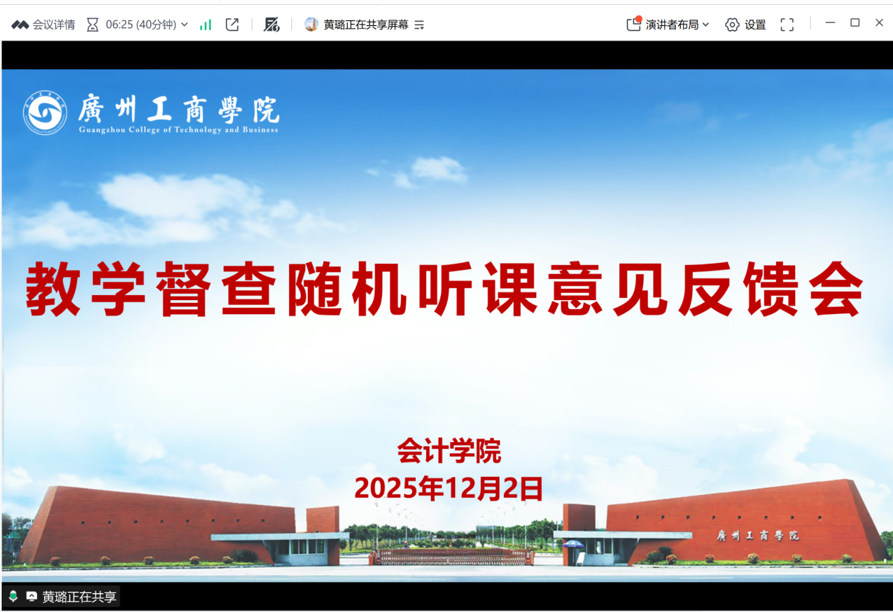 为深入贯彻落实学校教育教学督导工作要求,切实将听课评课反馈转化为教学质量提升的强劲动力,2025年12月2日,会计学院教学副院长黄璐副教授组织召开了听课评课意见反馈专项会议。会议聚焦近期校级督导听课评课情况的总结与反思,旨在传达督导意见,剖析教学短板,部署整改任务,统一规范标准。各教研室主任、课程组组长参加了本次会议。