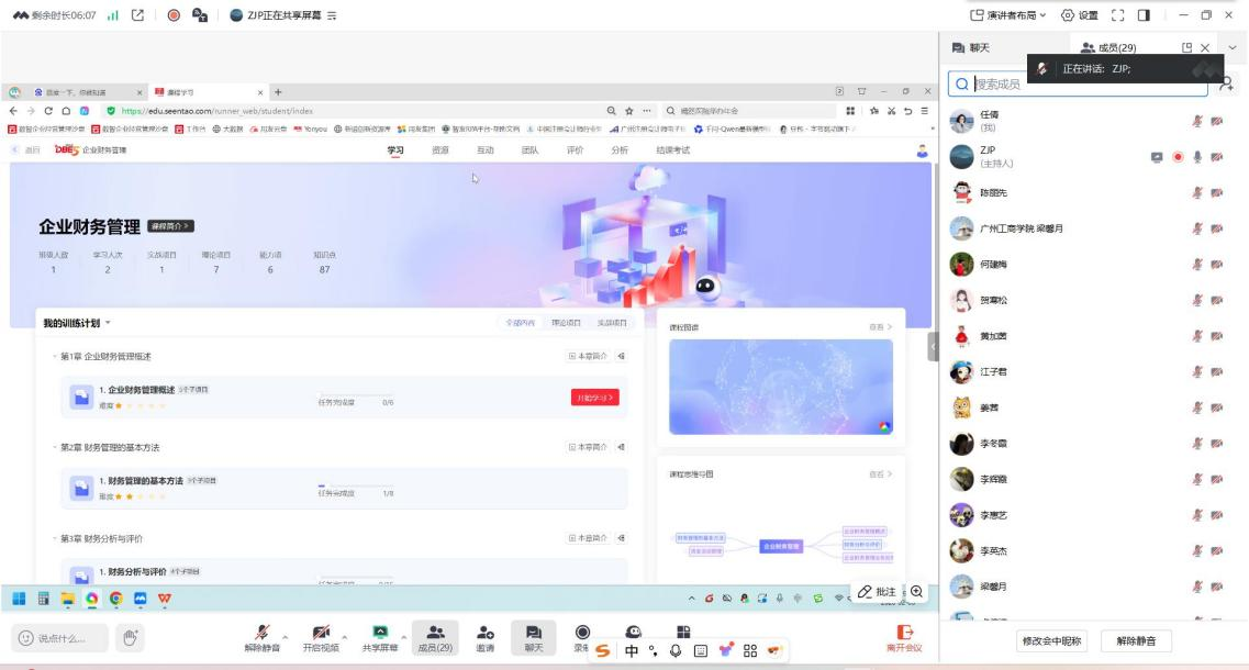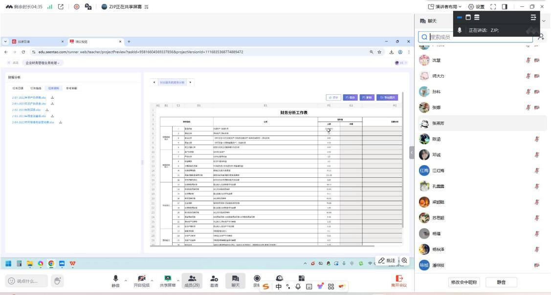 本次培训围绕平台的核心功能模块展开。技术专家通过现场演示,详细讲解了课程资源管理、虚拟仿真实验创建、小组任务部署、过程性数据监控与学情分析等操作流程。在互动环节,与会教师就如何将平台功能与《财务管理》《智能财务管理实验》等具体课程相结合进行了深入探讨。专家建议,教师可将平台内的典型任务融入教学设计,通过“理论讲授+平台模拟”的混合模式,有效提升学生的业财融合与实践创新能力。