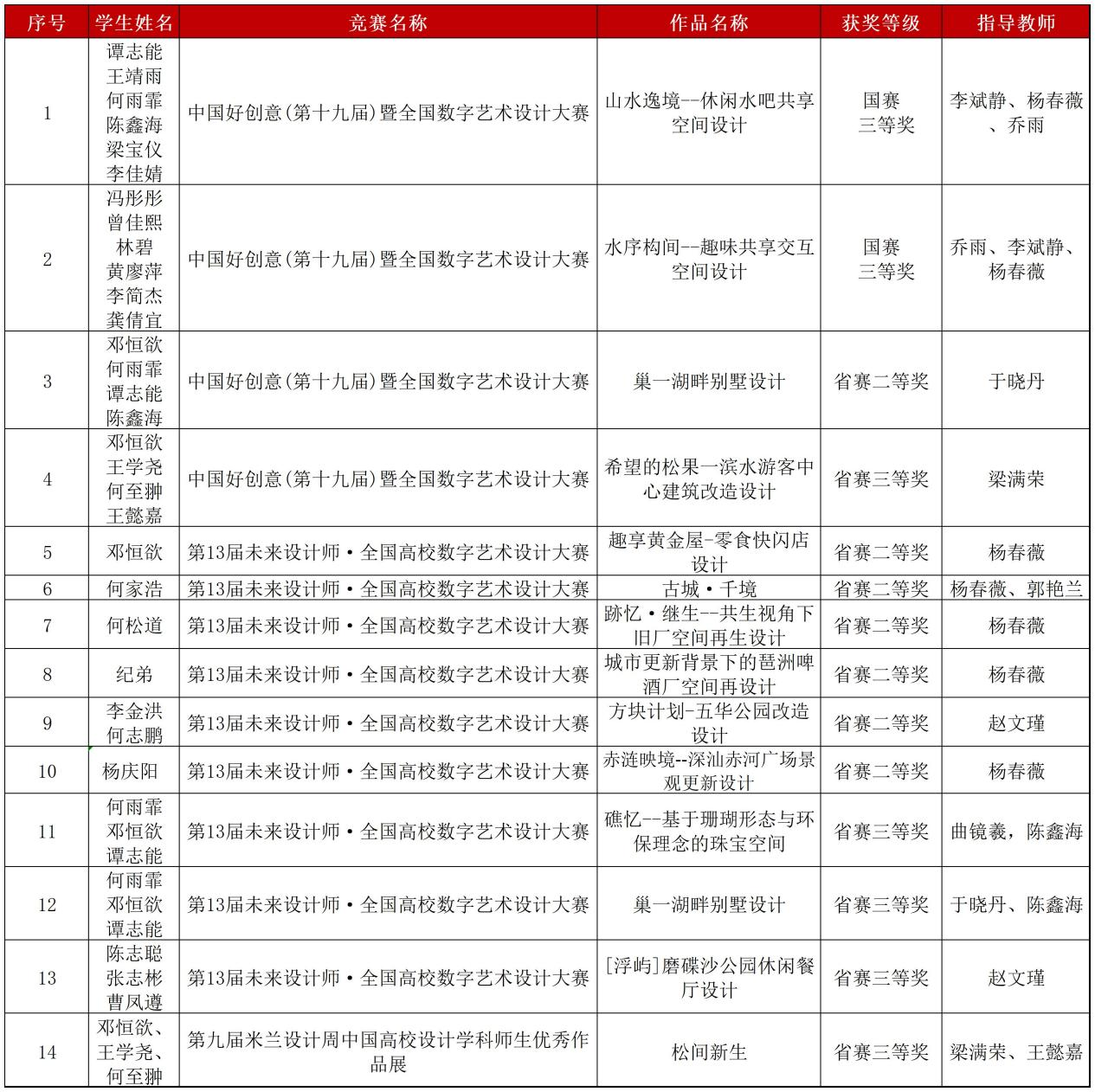 在中国好创意(第十九届)暨全国数字艺术设计大赛中,我院环境设计专业学生共荣获4项大奖,包括国赛三等奖2项、省赛二等奖1项及省赛三等奖1项,这充分彰显了“以赛促学、以赛促教”的教学理念所取得的显著成效。在第13届未来设计师·全国高校数字艺术设计大赛中,我院环境设计专业学生共摘得10项大奖,其中省赛二等奖6项、省赛三等奖4项;而在第九届米兰设计周中国高校设计学科师生优秀作品展中,我院学生亦获得省赛三等奖1项,进一步展现了我院环境设计专业学生在学术科技与社会责任领域的多元实力。