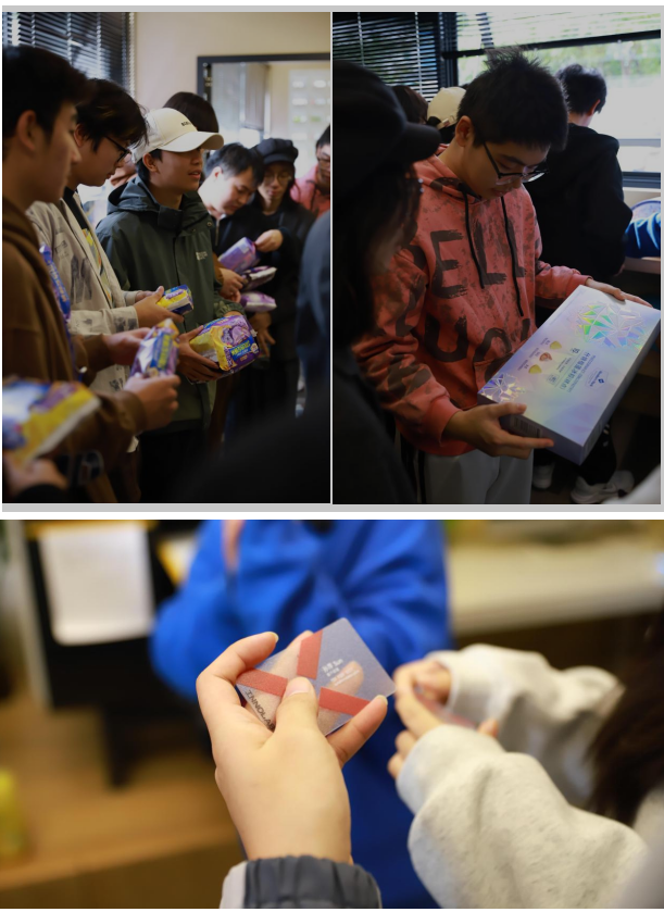 在活动负责人的引导下,同学们深入参观了项目管理部、设计部、完稿部等核心部门,全方位了解品牌设计公司的组织架构与协作模式。在完稿部门,负责人现场展示了设计作品从数字文件到实体成品的制作流程,重点讲解了印刷工艺选择、色彩校准、尺寸把控等关键技术要点,通过实物演示与细节拆解,让同学们对设计落地的实操规范有了更清晰的认知,同学不时就技术难点与工作人员交流探讨。