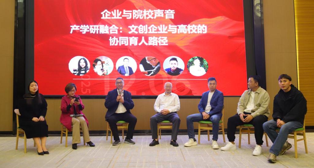 院校企业圆桌研讨环节,来自兄弟院校的领导、合作企业的负责人围绕"产学研融合:文创企业与高校的协同育人路径"这一核心主题,展开深度对话。与会嘉宾们围绕艺术专业课程体系升级、实践教学模式创新、学生就业创业能力培养、校企资源共享机制构建等关键问题各抒己见。嘉宾们普遍认为,高等艺术教育应打破校企壁垒,建立"教学-实践-孵化"一体化育人体系,通过共建实习实践基地、联合开发课程、共同开展项目研发等方式,实现人才培养与行业需求的精准对接。刘飞教授从《跨界融合:新时代设计学科建设的创新方向》分享了高校在新时代的背景下学科建设思路、跨界融合路径及实践探索等重要内容。