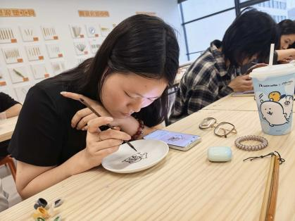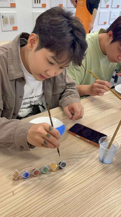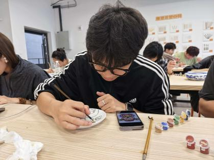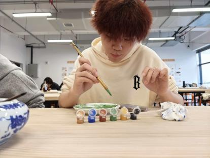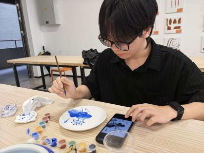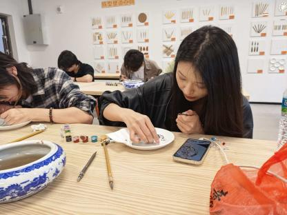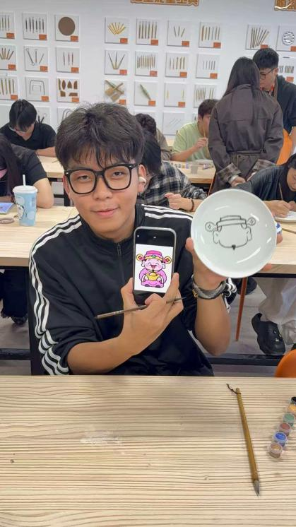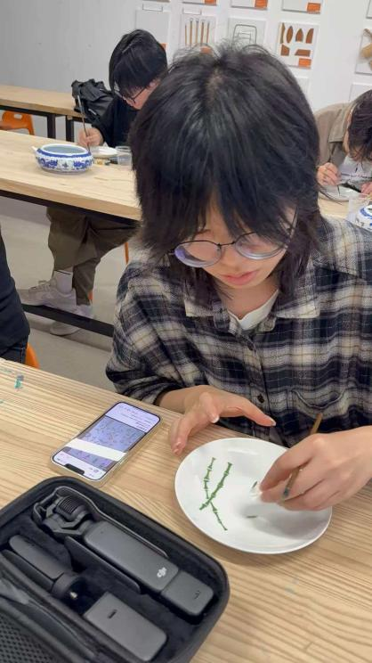 三宝瓷谷,目睹了陶瓷工艺从古至今的蜕变。在悠悠岁月中,景德镇的陶瓷技艺历久弥新,传承着匠心独运。从选泥到成型、上釉到烧制,每一个环节都在彰显着陶艺的精湛与文化的沉淀。途中师生参观了几位陶艺大师的工作室,目睹了泥土在匠人手中如何转化为一件件如诗如画的瓷器。部分学子专心观察、细致思考,并向师傅与老师请教景德镇陶瓷文化与纹样的来源与背后的历史典故。青花玲珑瓷作为景德镇的非遗工艺之一,学生们在三宝村瓷器师傅的引导下深入了解了青花瓷和玲珑瓷的制作工艺。青花瓷如梦如幻,玲珑瓷的精致雕刻令人赞叹不已。每一件瓷器的细腻绘画与纯净釉色,均体现了景德镇陶瓷艺术在世界艺术舞台上的卓越地位。老师们在旁也讲解了青花瓷的烧制温度、釉色配方、独特技艺与关于瓷器图文样式造型特点元素的提取与创作,使学生们一方面对景德镇陶瓷的历史与工艺有了更深刻的领悟。另一方面对于艺术的认知有了综合性提高。