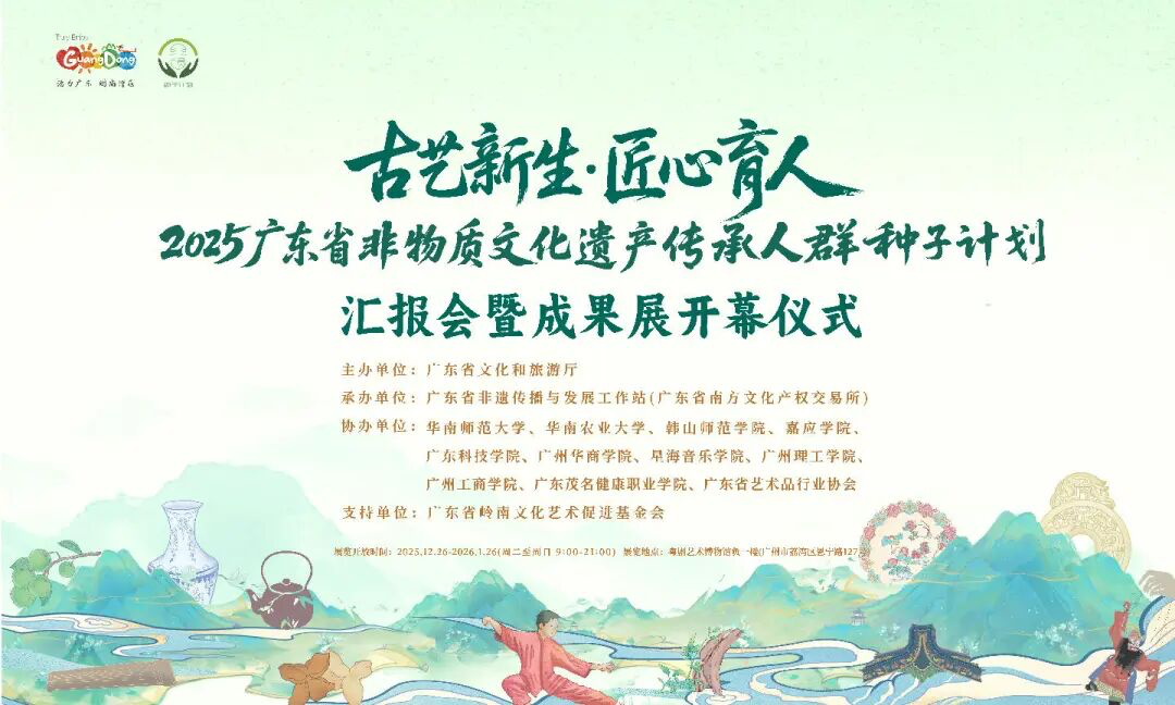 本次汇报会暨成果展以“古艺新生,匠心育人”为主题,以“五感”体验为线索,分设多个主题展区,集中展示今年种子计划11个非遗项目的培育成果。展览于2025年12月26日至2026年1月26日在广州粤剧艺术博物馆向公众免费开放,让广大市民和非遗爱好者走进这场青春与匠心交织的展览,在观赏与体验中,共同触摸岭南非遗生生不息的脉搏,感受其在传承与创新中蕴含的使命与焕发的活力。