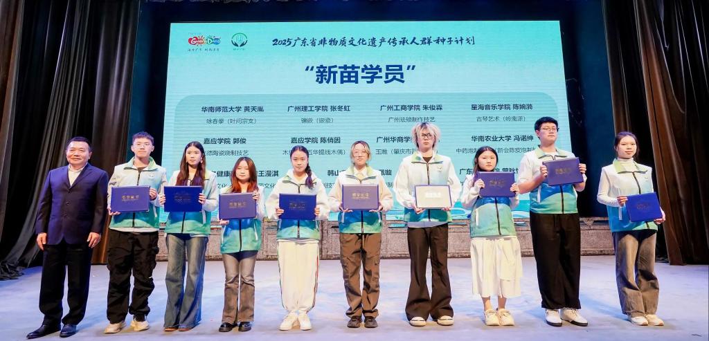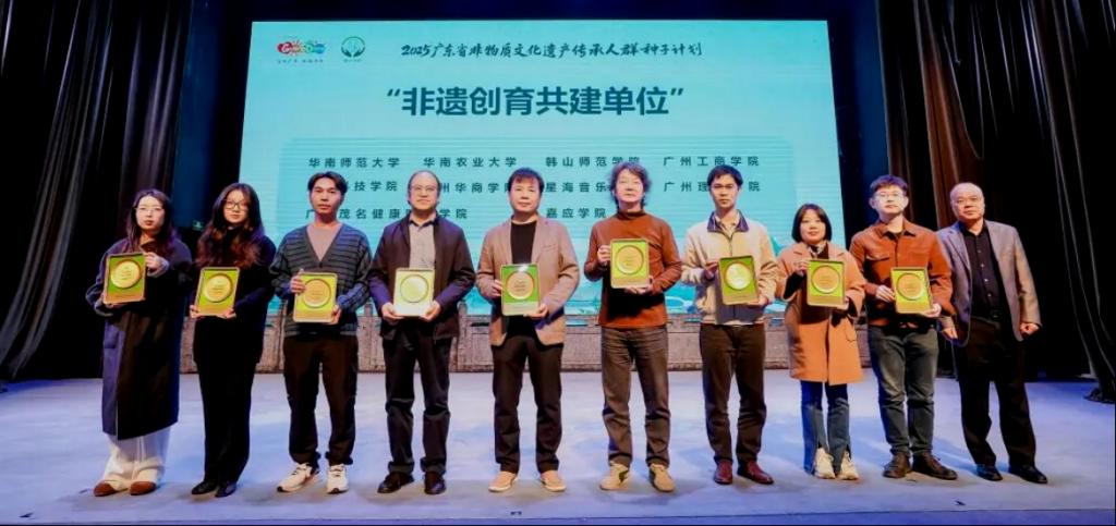 作为2025年广东省非物质文化遗产传承人群种子计划“非遗创育共建单位”之一,我校美术学院院长徐浩艇、副院长郝孝华及师生代表应邀参加了开幕仪式。2023级公共艺术专业朱俊霖同学获主办方颁发的优秀学员证书并代表广州珐琅技艺项目学员行谢师礼。