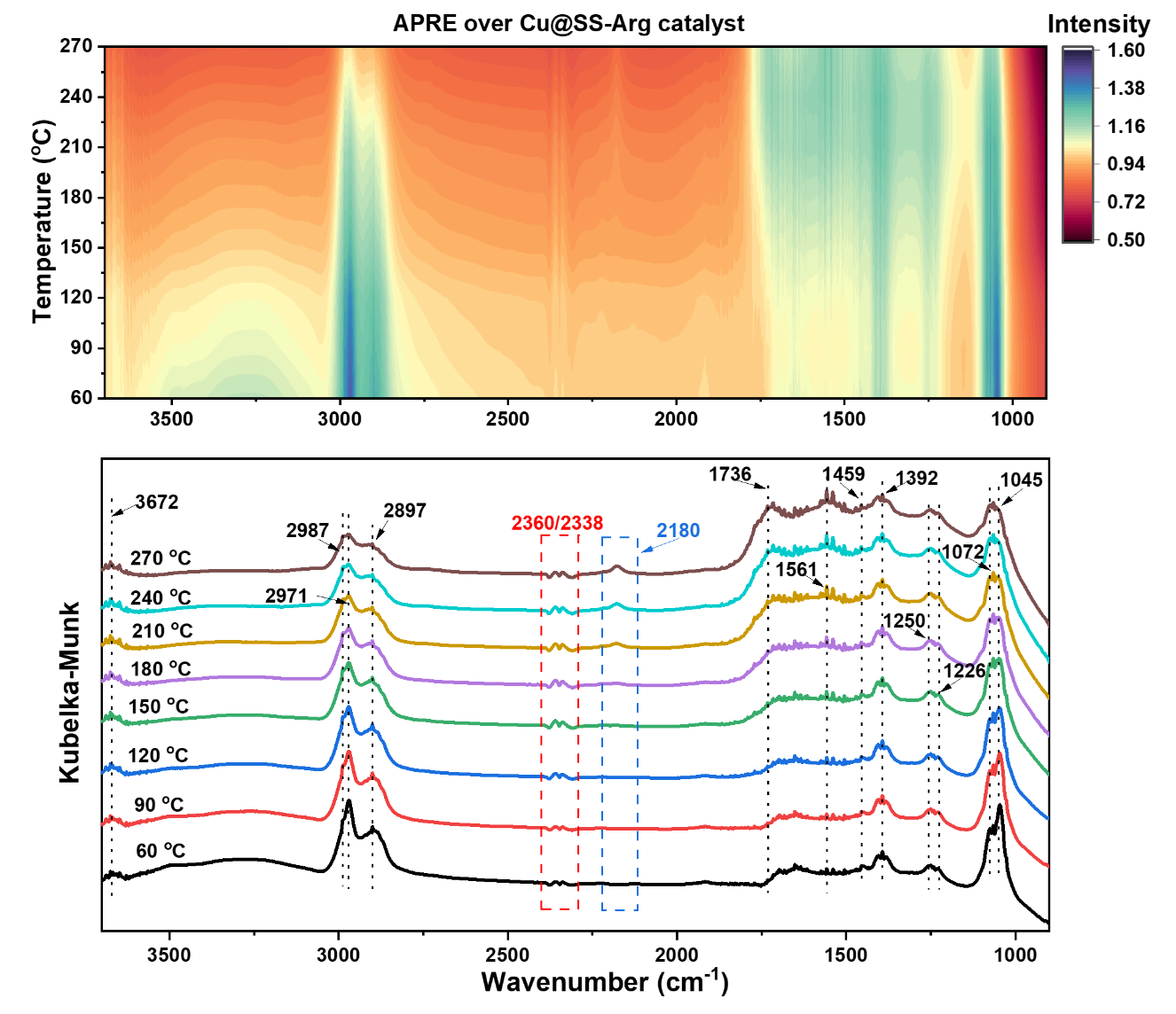 图3.Cu@SS-Arg催化剂上APRE的原位DRIFTS光谱