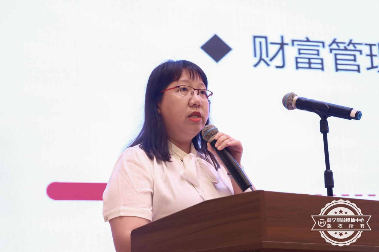 投资学专业主任谢桂珊随后登台,为新生们细致阐述了投资学专业人才培养与内涵建设情况。她从师资力量、课程体系、实践平台和就业前景四个维度,全面介绍了投资学专业的特色与优势。谢主任特别强调了“理论与实践并重,知识与能力共进”的培养理念,详细解读了“课程学习、项目实践、学科竞赛、企业实习”四位一体的人才培养模式,帮助新生对未来的学习生涯建立了清晰认知。她寄语同学们要“尽快转变角色,主动规划学业,在投资学的广阔天地中书写精彩青春”。