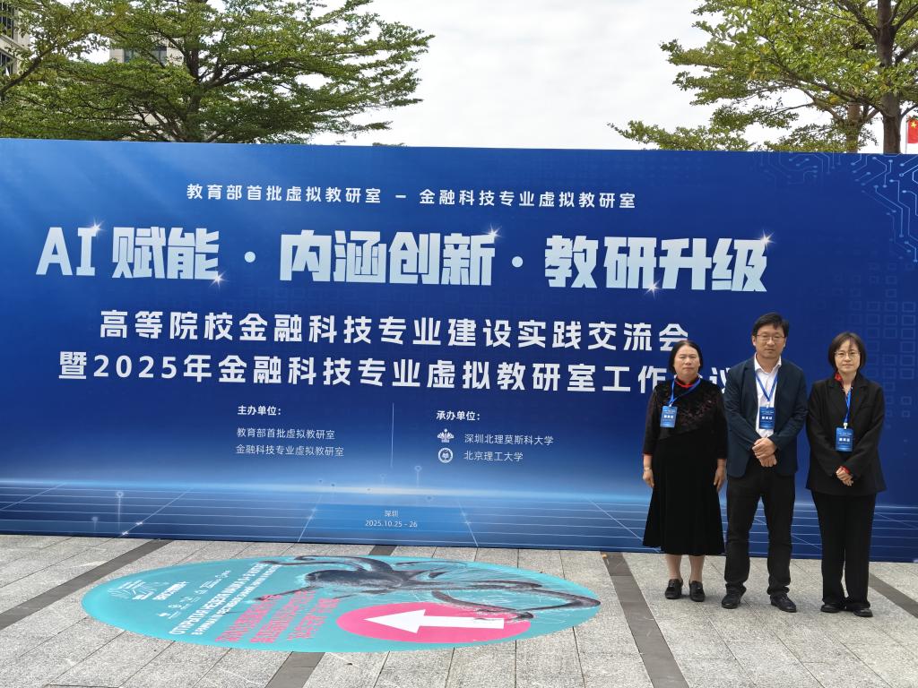 10月25日至26日,由教育部金融科技虚拟教研室主办,深圳北理莫斯科大学经济系联合北京理工大学承办的“高等院校金融科技专业建设实践交流会暨2025年金融科技专业虚拟教研室工作会议”在深圳顺利召开。会议,围绕“AI赋能·内涵创新·教研升级”这一主题交流研究成果与人才培养经验,并就金融科技人才培养体系、课程设置与建设等议题进行了深入的讨论。广州工商学院金融科技专业主任程飞副教授、副主任于英含老师及专任教师曾素梅教授组成参会团队,全程参与会议各项议程,在东部区虚拟教研分论坛分享实践经验,并深度参与金融科技师资专项培训。