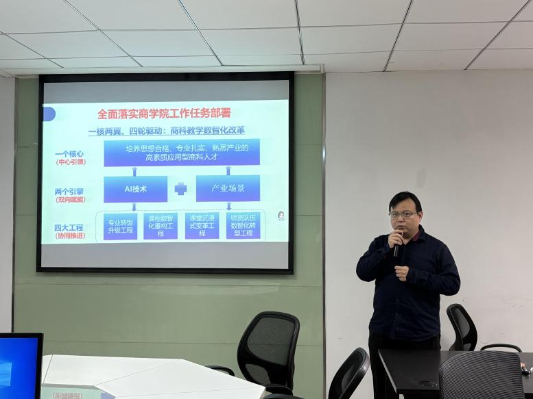 会上,电子商务专业负责人邓任锋副教授对专业建设规划进行详细解读,明确了新学期专业建设的七大核心任务:以党建引领专业建设新发展,把党建工作与专业建设深度融合;扎实做好一流专业建设结题准备工作,确保各项建设任务落地见效;全力推动“电商E企联”平台建设,搭建校企合作高效桥梁;精心打造“电商新视界”品牌活动,丰富专业建设内涵;持续稳固学科竞赛优势,以赛促学、以赛促教、以赛促建;加强师资队伍建设,提升教师综合素养与教学科研能力;推进专业数据收集常态化,为专业建设决策提供科学数据支撑。
