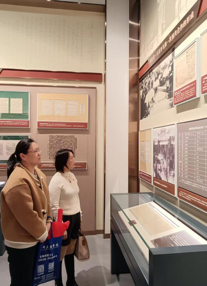通过四个展区的参观学习,大家深刻认识到,中共三大确定的统一战线方针为中国共产党走上更加广阔的历史舞台创造了条件,也让大家更加坚定了在新时代发扬斗争精神、保持优良作风的决心。