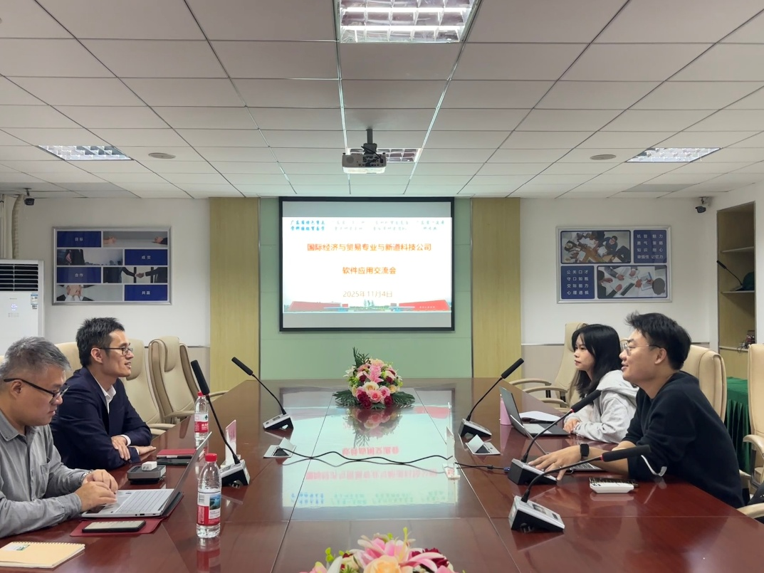 11月4日下午,国贸教研室与新道科技公司在商学院501就数字贸易平台建设及校企深度合作开展专题交流会。国际经济与贸易专业副主任柴虎虎老师和曾维婷老师,新道科技相关负责人曾祥伟等代表出席会议。