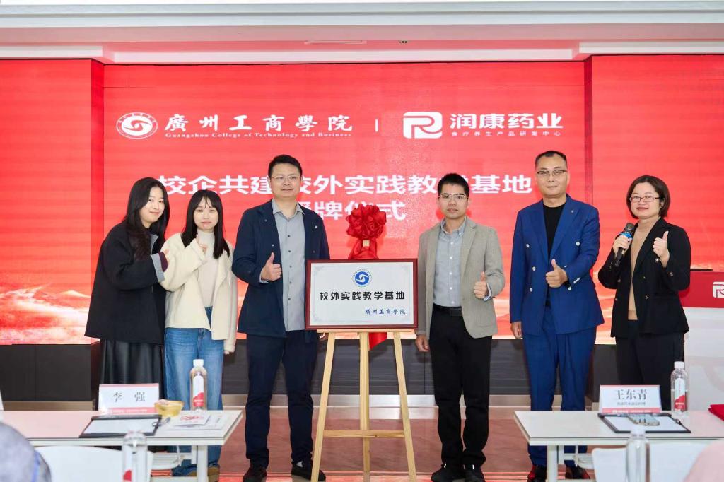 随后电子商务专业师生同企业方代表一同前往会议室进行座谈,润康药业副总经理王东青介绍了企业“让养生和吃饭一样简单”的产品定位,广州工商学院李强博士则围绕“电商专业实践与健康产业结合”分享了教学规划。双方现场完成“校外实践教学基地”签约与挂牌,标志着广州工商学院电商专业与润康药业的实习、就业合作正式落地。