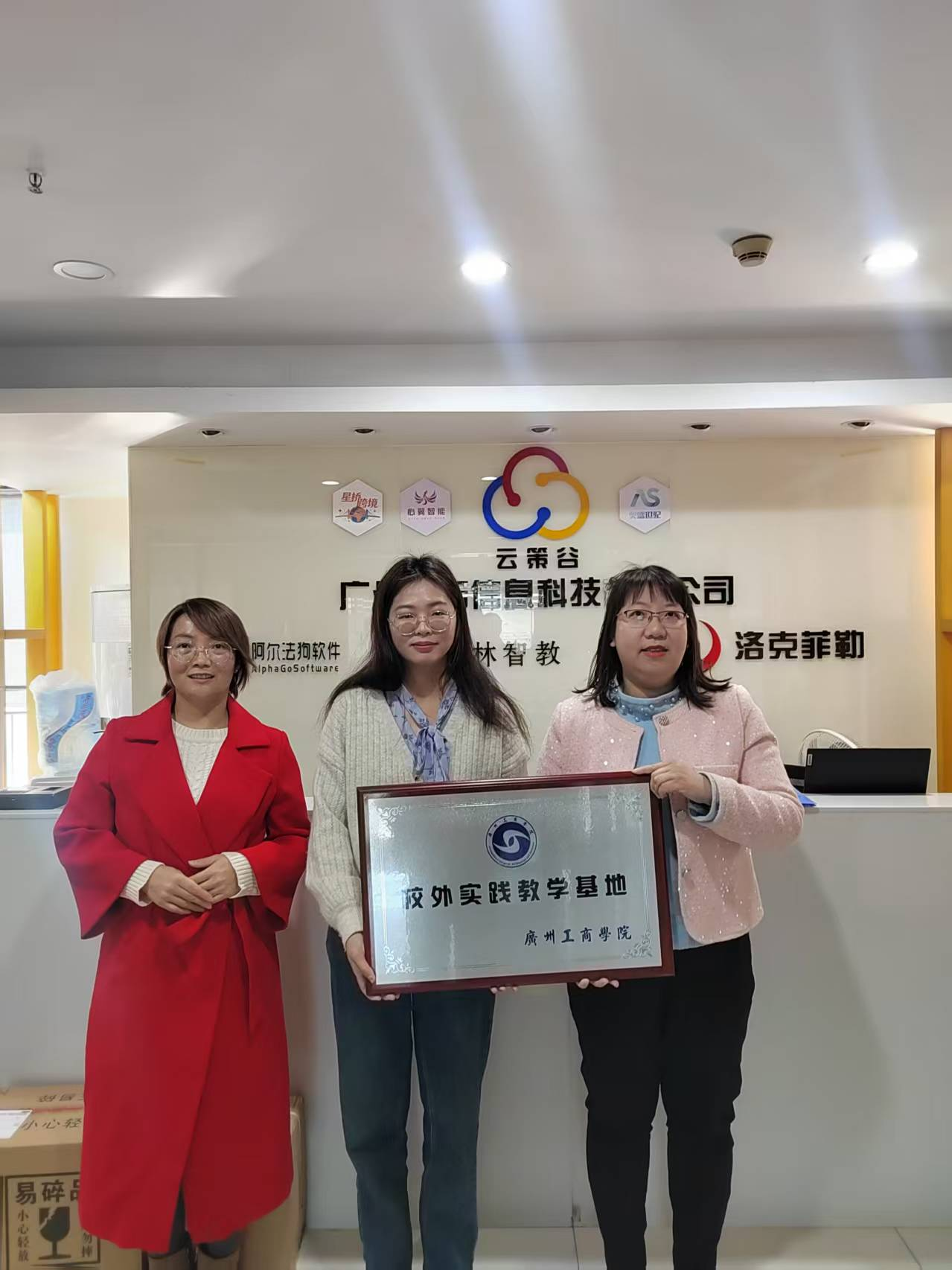2026年1月9日上午,广州工商学院商学院投资学教研室主任谢桂珊带队,副主任高桦、教师代表陈兰江一同走访了广州千宏信息科技有限公司,并成功举行“广州工商学院校外实践教学基地”授牌仪式。此次走访旨在深化校企协同育人机制,探索投资学前沿领域的人才培养新路径。