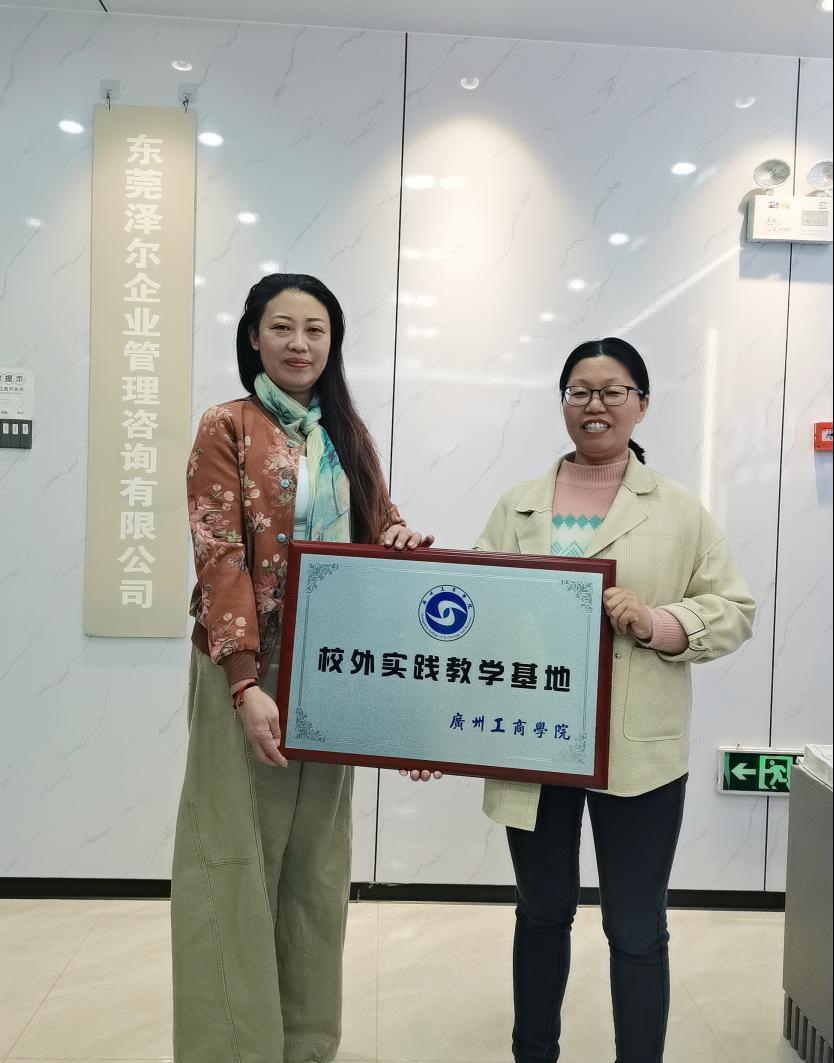 为深入贯彻落实访企拓岗促就业专项行动的精神,加强校企深度融合,促进协同育人,2026年1月23日,广州工商学院商学院电子商务教研室教师黄贤丽于今日代表学校赴东莞泽尔企业管理咨询有限公司,正式向企业颁授“广州工商学院校外实践教学基地”牌匾,并授予泽尔咨询总经理黄梅华女士“广州工商学院行业导师”聘书。此次授牌仪式标志着双方在人才培养、科研合作及社会服务等领域迈入深度合作新阶段,为数字经济时代应用型人才培养注入新动能。