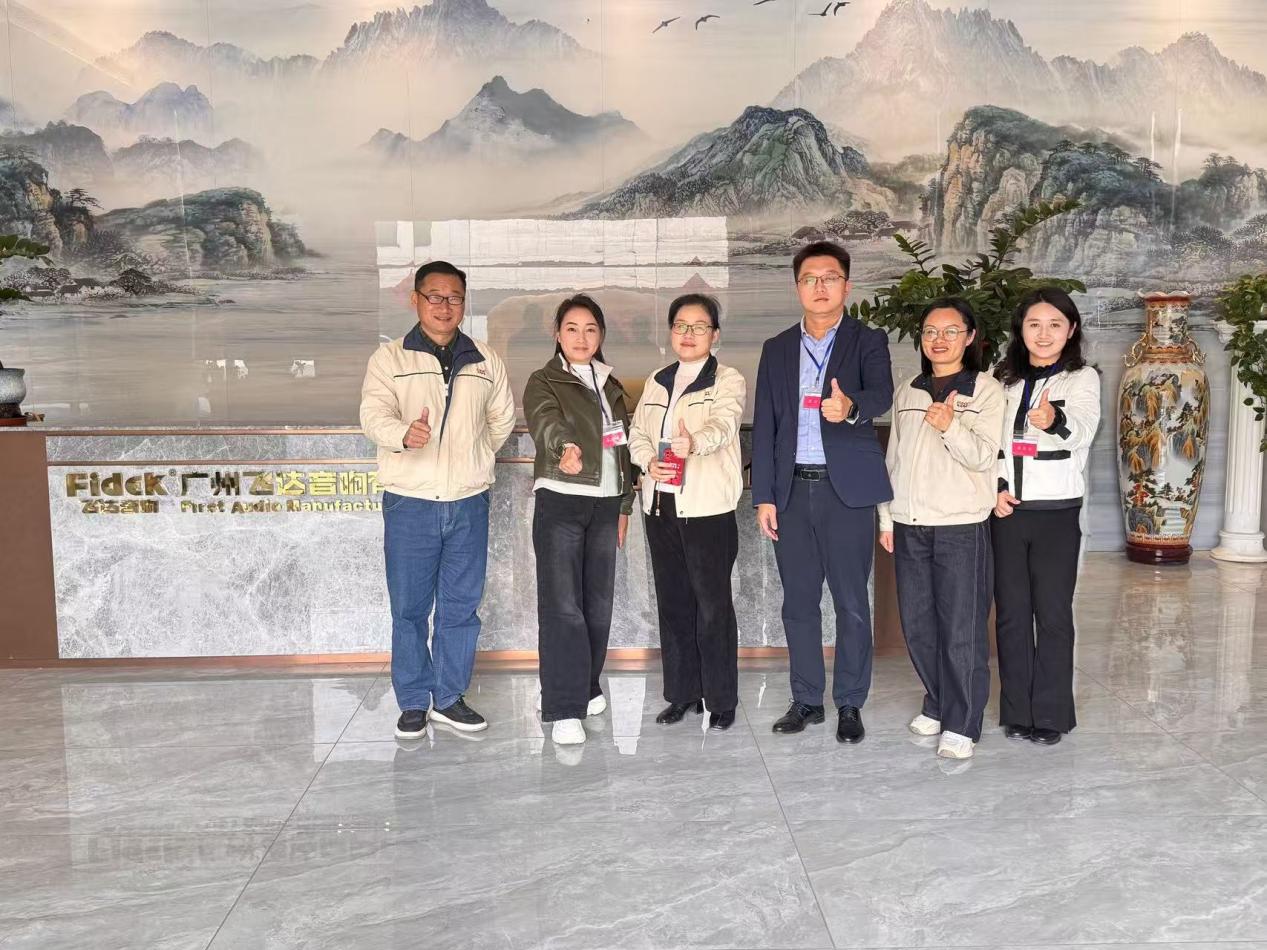 为精准对接区域产业人才需求,深化产教融合协同育人,进一步完善时尚产业人才培养体系,2月2日,广州工商学院商学院党委书记、院长林波,党委副书记、副院长张娜及学院办公室主任李琳一行,专程赴花都区音响产业龙头企业——飞达音响有限公司(以下简称“飞达音响”)开展“访企拓岗”专项交流活动。飞达音响有限公司王经理、运营总监梅总监等企业高管热情接待了学院一行。