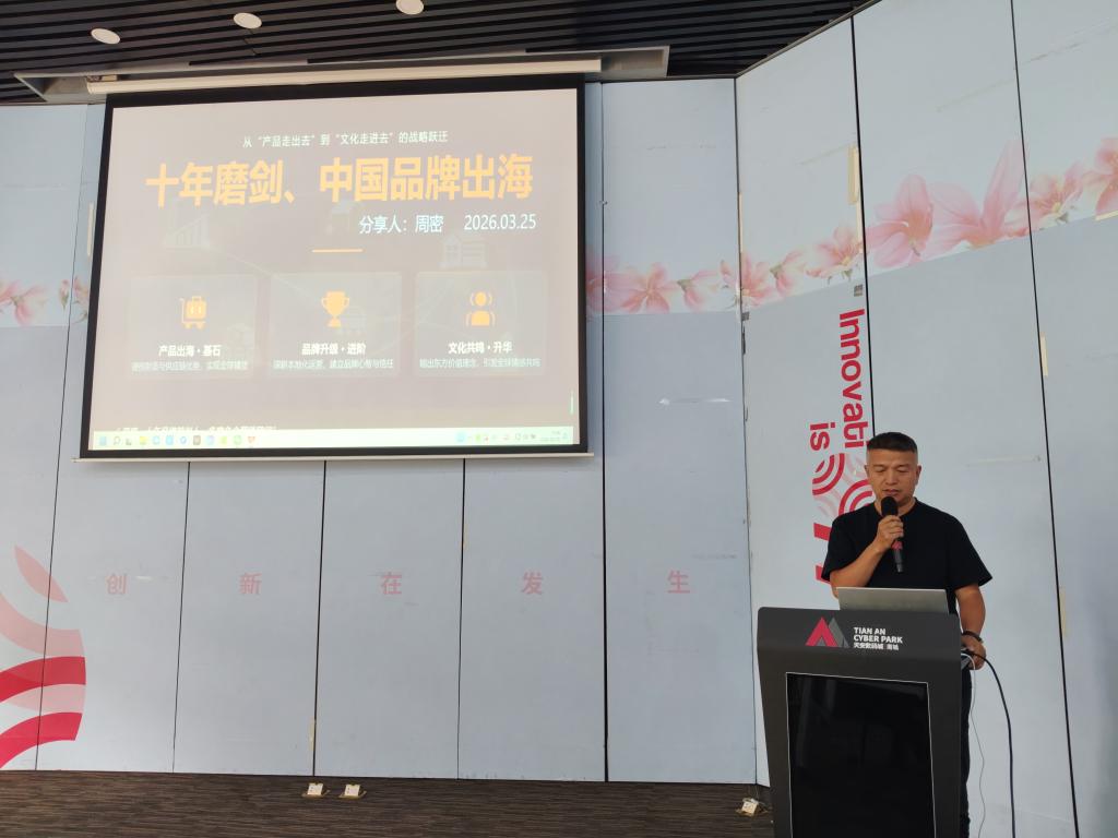 周密老师则以"从品牌营销看行业发展趋势"为切入点,深度剖析了从"卖货"到"卖价值"的品牌出海进化路径。他结合小米、特斯拉等企业的全球市场打法,以及大湾区外贸企业的实际案例,系统讲解了中国企业品牌出海1.0(代工厂/跨境电商)-2.0(中国制造出海)-3.0(中国品牌全球化)的发展历程。