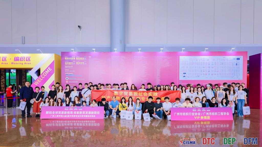 现场观摩期间,学生们重点记录了参展企业的核心产品、技术亮点与海外市场布局,深入了解产业设备的智能化、绿色化发展趋势。特别是在数码印花展区,环保技术的创新应用让同学们深刻认识到绿色贸易正在成为国际贸易新的增长极。