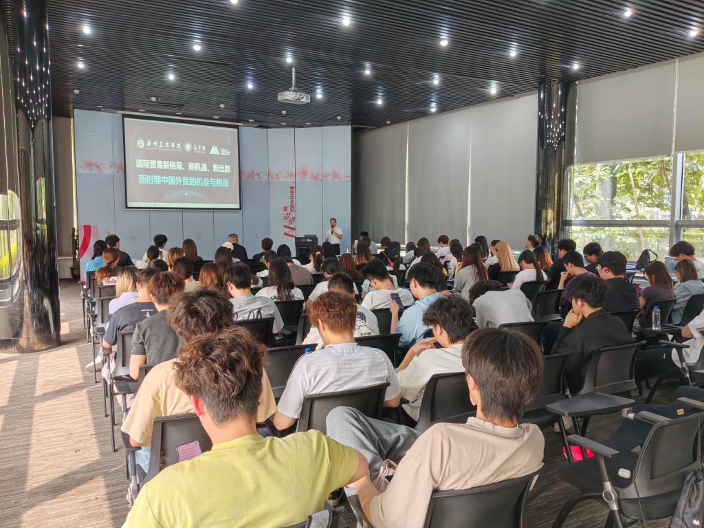 黄艺平老师以"从国际贸易发展趋势看当代大学生需要掌握的软硬件知识"为主题,从全球贸易版图的深刻变革切入,系统解析了中美贸易博弈、俄乌冲突后的贸易格局、东南亚新增长极等重大议题。他强调,在地缘政治冲突、技术脱钩、贸易壁垒等挑战不断涌现的当下,当代大学生必须构建"全球视野+数据驱动+风险把控"的数字贸易思维,掌握扎实的专业知识与实战技能,才能从容应对行业的快速发展。