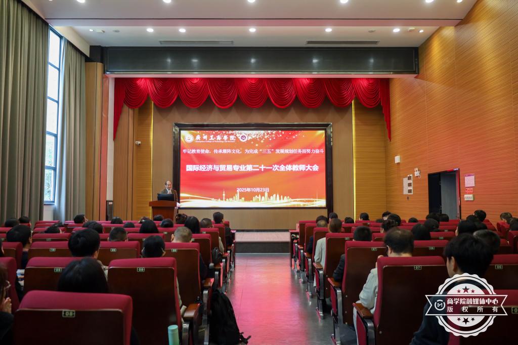 暑退九霄净,秋澄万景清。为擘画专业发展新蓝图,凝聚师资建设新动能,2025年10月23日,国际经济与贸易专业于图书馆会议室隆重举行第二十一次全体教师大会,启动专业第三个五年建设规划,学院领导和专业全体教师参加了大会,专业负责人李勤昌教授主持会议。