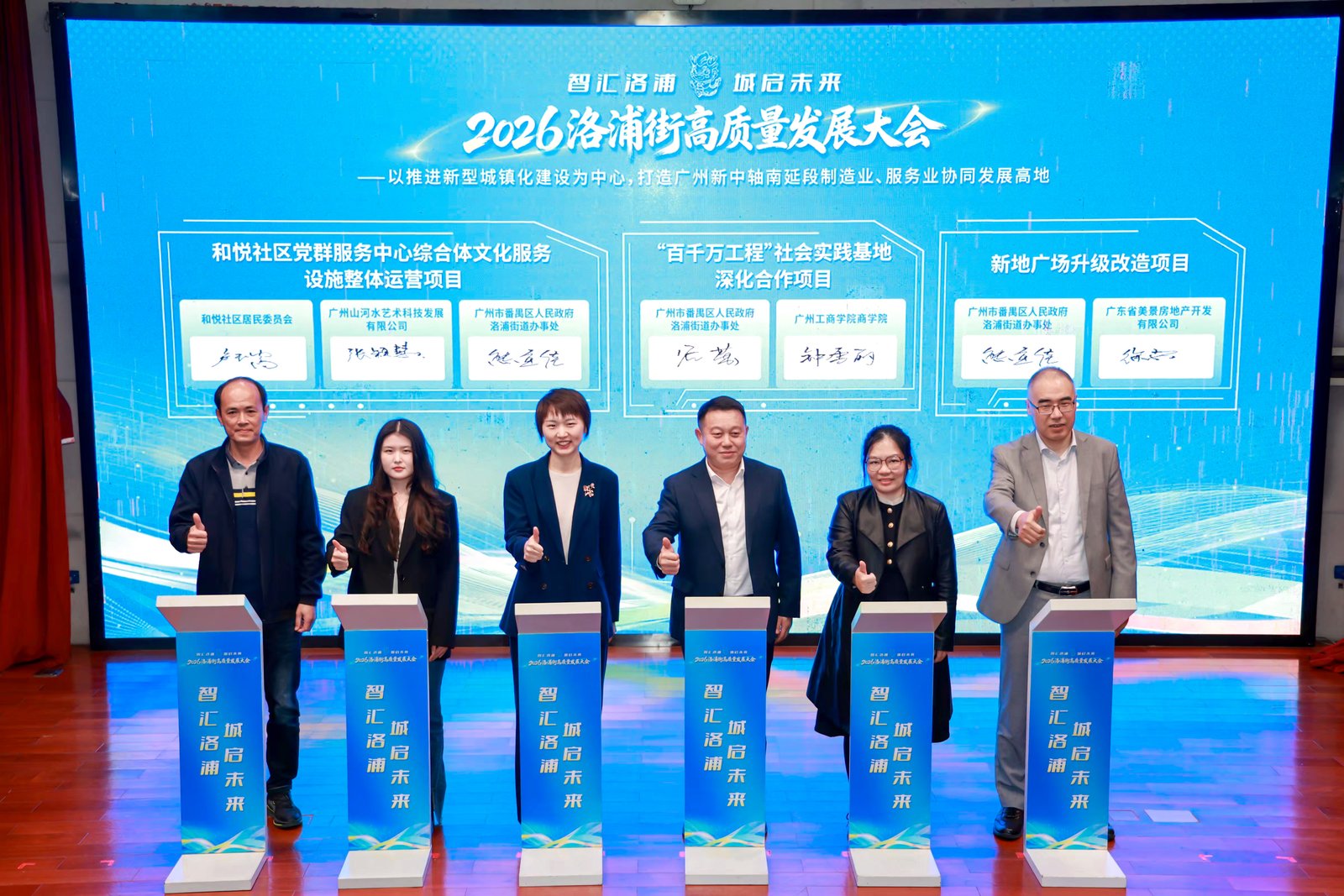 昨日(2026年3月5日),广州市番禺区洛浦街道隆重召开2026年洛浦高质量发展大会,广州工商学院商学院作为重要合作伙伴受邀参加。大会现场,双方就共建“百千万工程”社会实践基地进行了签约仪式,续写了校企合作、共谋高质量发展的新篇章。此次合作是商学院积极响应国家乡村振兴战略号召,持续践行高校服务地方经济社会发展责任与担当的又一重要举措。