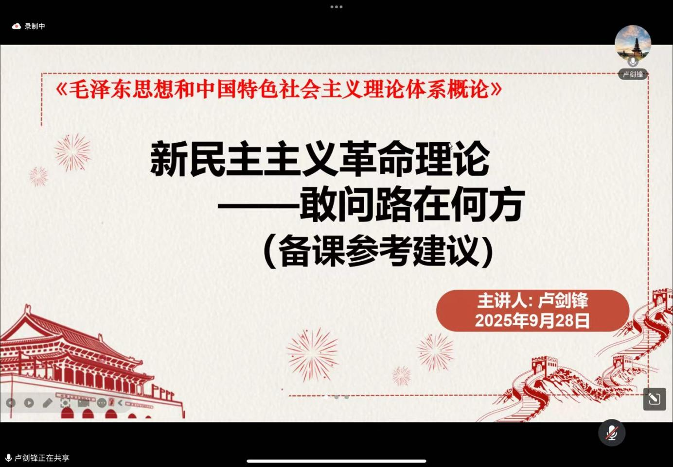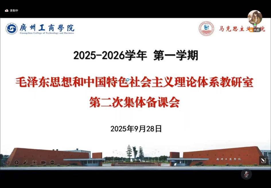 为提升思政课教师的专业素养与教学能力,丰富教学内容、创新教学方法、打造高质量课堂,2025年9月28日,马院毛概论教研室在线上召开本学期第二次集体备课会。会议由教研室助理李燕老师主持,全体任课教师云端相聚,共研教学新路径,共探课堂新样态。