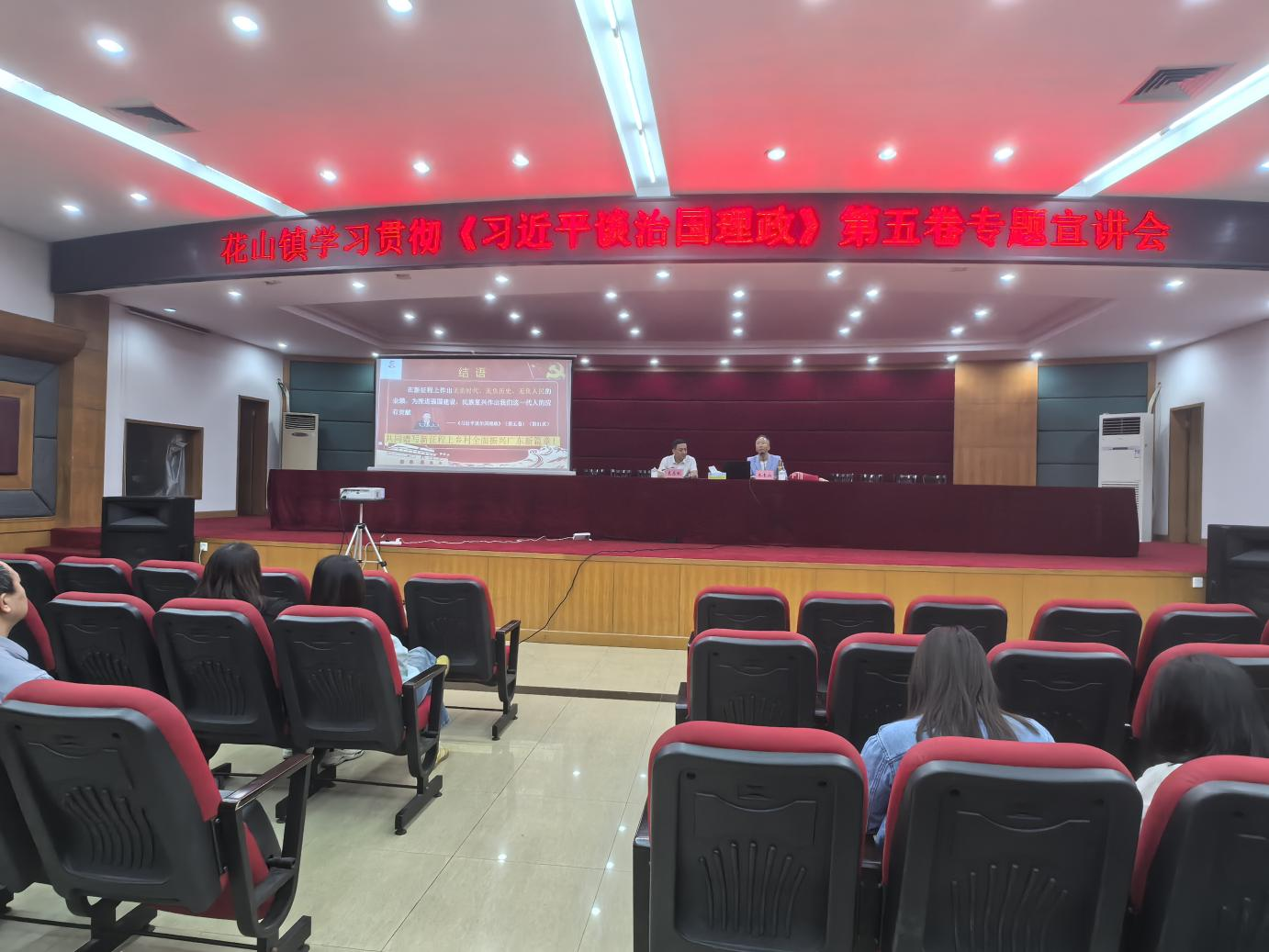 为深入学习宣传贯彻习近平新时代中国特色社会主义思想,进一步推动党的创新理论深入基层,2025年10月28日下午,广州市花都区花山镇政府特别邀请广州工商学院马克思主义学院朱青山副教授开展《习近平谈治国理政》第五卷专题宣讲活动。宣讲报告内容紧贴实际,理论阐释深刻、实践指导作用显著,花山镇政府工作人员及企业代表凝神静气、认真聆听讲座。
